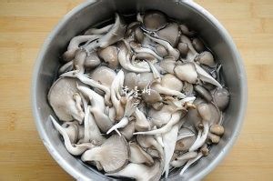 平菇掰开冲洗干净,在清水中浸泡上10分钟。