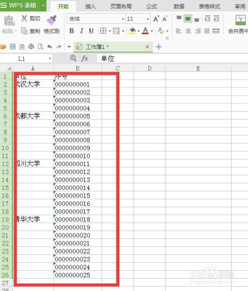 选中要填充多个不相同单位名称列A2:A26单元区域。