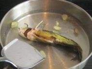 另取锅,放适量清水,放下昂刺鱼,加姜片