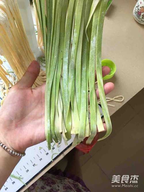 5用刀把面团分成小块,用压面机把面压成自己喜欢的面条,也可以手擀面,后用刀切成条