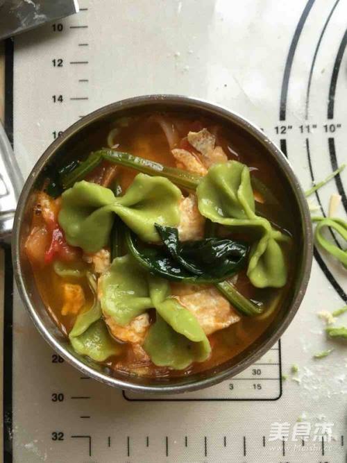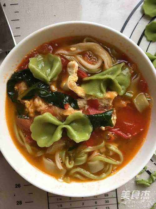 4将两个鸡蛋打碎,炒过后切成小块放碗里,取一个西红柿切碎,放锅里翻炒后,加入盐,鸡精,十三香,继续翻炒片刻,加入水,鸡蛋倒进锅里,直至水烧开,汤汁变红,倒进碗里备用,料的多少取决于自己的口味