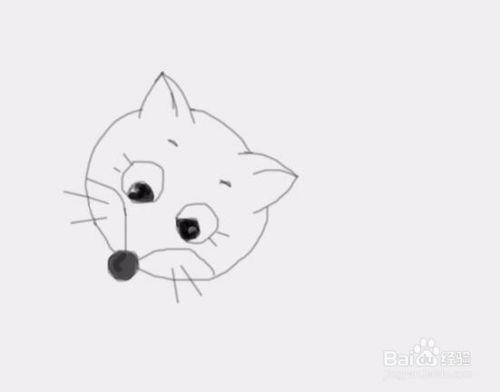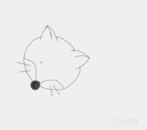在头部下面画出小猫咪的鼻子、面部,再在面部的两侧画出小猫咪的胡须,如图所示: