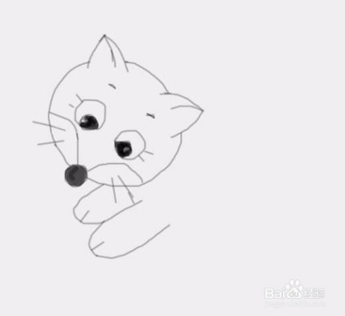 再画出小猫咪的背部,然后在小猫咪的身体上面画出小猫咪的尾巴,这样我们的小猫咪就画好了,如图所示: