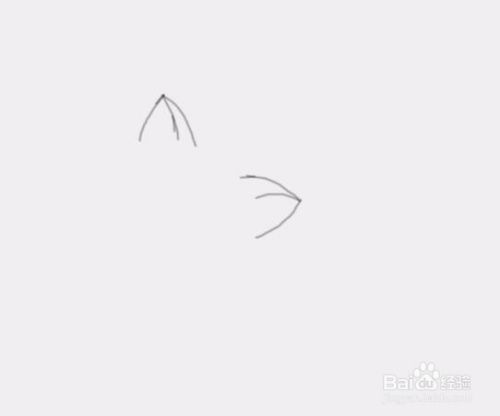 我们可以先画出小猫咪的两只耳朵,如图所示: