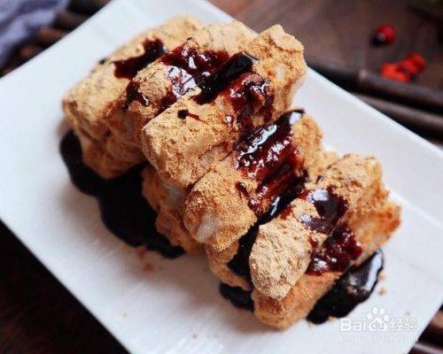 锅中加少许水,然后加入红糖,小火加热,一直搅拌直到红糖融化。然后待红糖融化后,淋浇在装好盘的糍粑上。