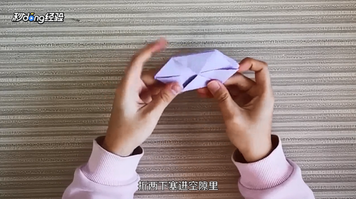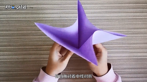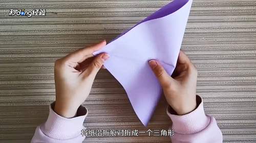 将纸沿对角线对折,将纸沿折痕对折成一个三角形。