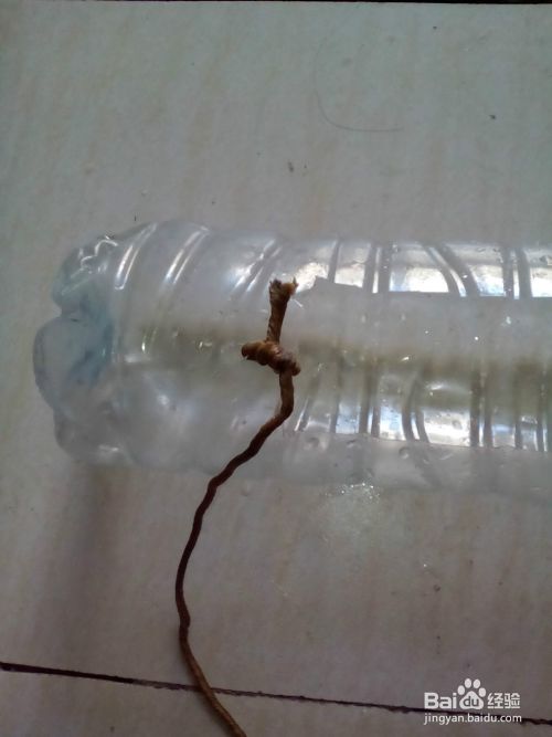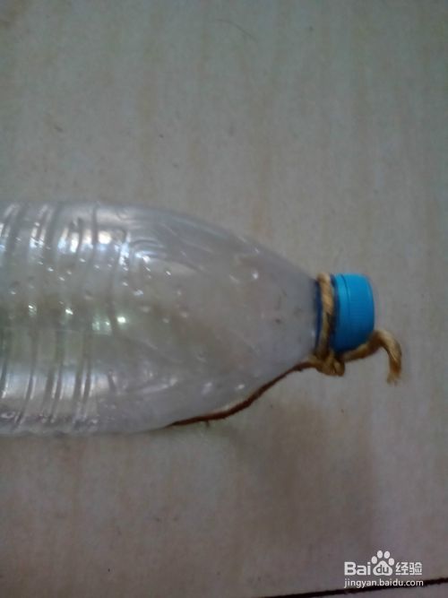 再把准备好的绳子一头穿在刚钻的小孔里,另一头甩在瓶嘴那里,就可以啦(绳子可根据自已想要挂的长度来定)
