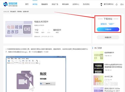 然后,找到“电脑视频去水印软件”点击进去,右侧有一个“下载应用”和“提取码”,点击进入下载页面;
