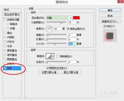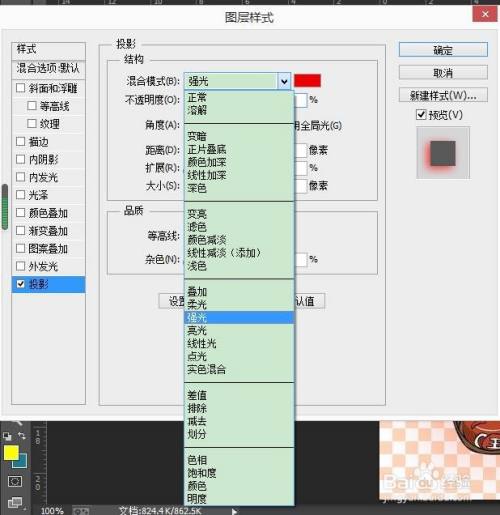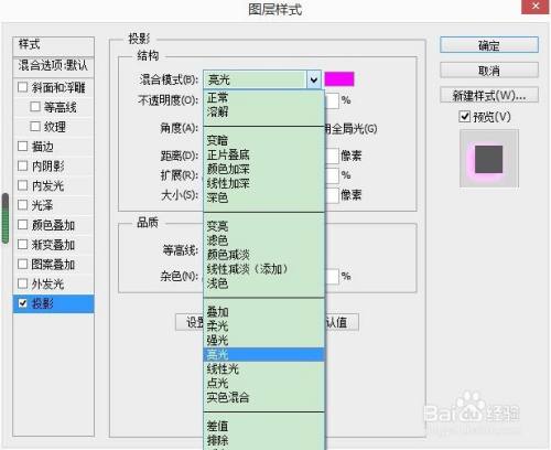 PS中如何设置投影亮光效果?