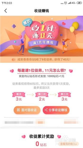 收徒有两个方法,一个是面对面收徒,一个是分享收徒,只要收到徒弟都可以。