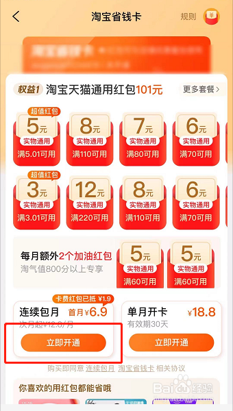 开通淘宝月卡需要分五步完成,下面介绍具体操作汉步骤: