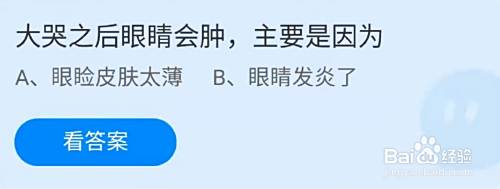 大哭之后眼睛会肿,主要是因为?眼睑皮肤太薄,眼睛发炎了,正确答案:眼睑皮肤太薄。