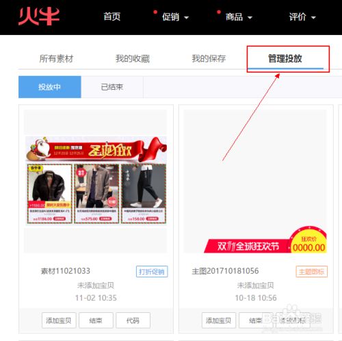 设置好的模板活动,可以在【管理投放】页面进行管理,包括调整投放模板的宝贝,结束投放或者获取代码自定义装修等。