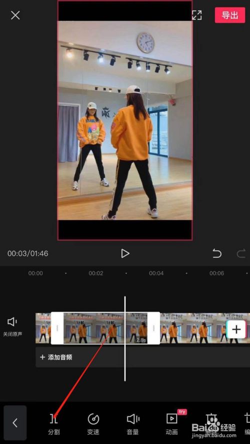 然后在视频编辑窗口中,选择要剪辑 部分,点击“分割”。