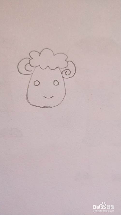 如图,首先画出小绵羊的头部,稍微长一点会更好看哦。