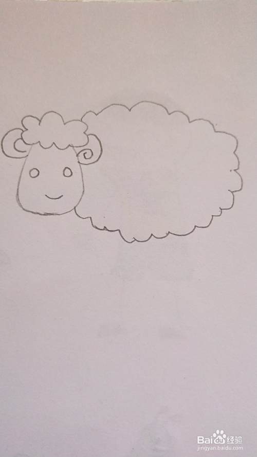 如图,画出小绵羊头上的毛毛,就像是一朵白云。