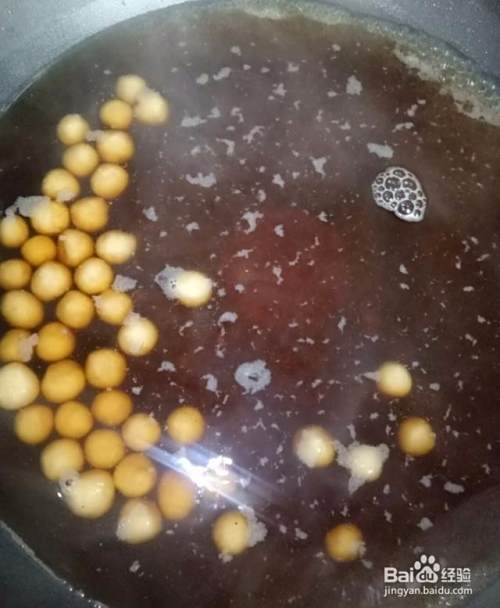 第四步、把圆球下入锅中的红糖水中煮15分钟左右