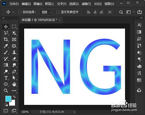 我们把前景色设置为蓝色【#3fcee3】,然后用【文字工具】输入“NG”的字母。
