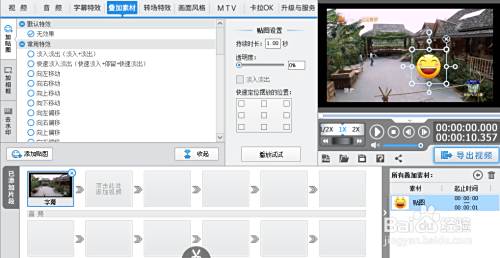 在想要添加贴图的地方双击,会弹出选择贴图提示框;在贴图列表中选择自己想要的贴图;点击确定,会看到贴图被成功添加到视频界面了。