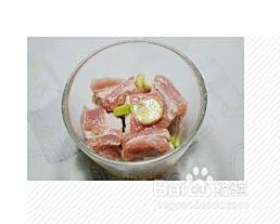 排骨洗净斩断加清水静置10分钟出血水。葱1根切段,姜切片待用。排骨血水倒掉洗净沥干,入葱段、姜片(3片)、料酒2勺、盐1勺腌制待用