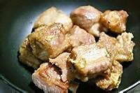 转小火,调入料酒4勺、糖2勺、盐1/2勺炒匀