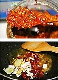 锅内留底油大火烧热,转中火,入豆瓣1大勺、干辣椒、花椒、姜蒜片,翻炒爆出香味