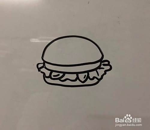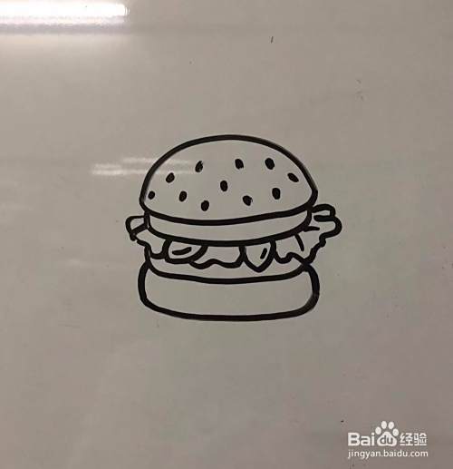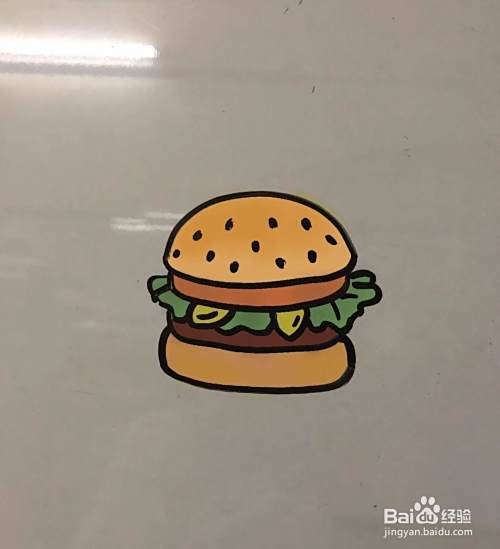 最后涂上颜色,一个简单好看的汉堡包就画好了。