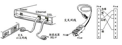 (3)安装ADSL Modem 这是其中最关键的过程,眼看着就要大功告成了。这也是其中最简单的过程,既不需要拧螺丝也不需要拆机器。您只需要用前面准备那另一根电话线将来自于信号分离器的ADSL高频信号接入ADSL Modem的ADSL插孔,再用一根五类双绞线,一头连接ADSL Modem的10BaseT插孔,另一头连接计算机网卡中的网线插孔。这时候打开您的计算机和ADSL Modem的电源,如果两边连接网线的插孔所对应的LED都亮了,那么您的硬件连接也就成功了,见图1.1.2。