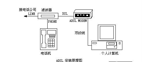 安装ADSL Modem的信号分离器(又叫滤波器,Splite) 信号分离器是用来将电话线路中的高频数字信号和低频语音信号分离的。低频语音信号由分离器接电话机用来传输普通语音信息;高频数字信号则接入ADSL Modem,用来传输上网信息和VOD视频点播节目。这样,您在使用电话时,就不会因为高频信号的干扰而影响您的话音质量,也不会因为在上网时,打电话由于语音信号的串入影响上网的速度。您可以想象一边拿着电话和朋友聊着天;一边通过电脑在网上冲浪;同时又通过装有机顶盒的电视机收看着精彩的视频点播节目。