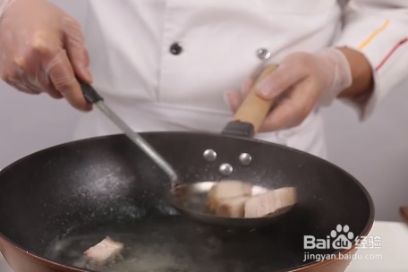 然后将锅中倒入油,等油温加热到七成热时,再倒入五花肉,油炸到变色后捞出即可。
