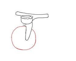 接着勾画轮子的轮廓,并在篮子下方左边勾画弧线,勾画完整配件。