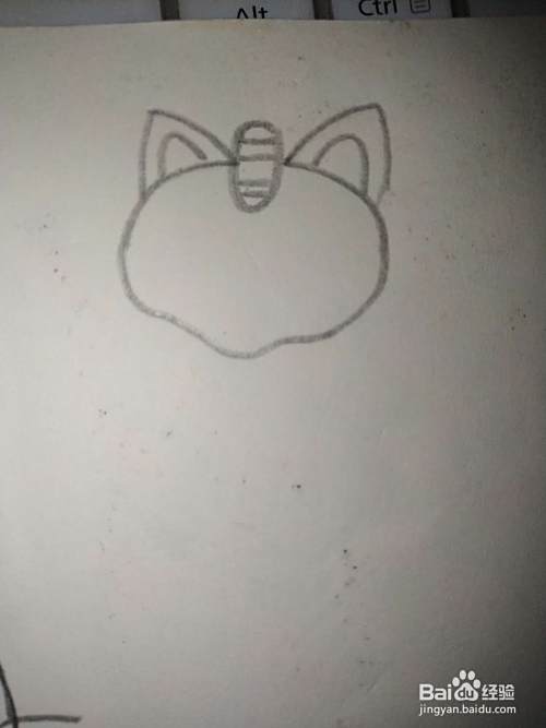 再画上喵喵的脸部,脸比较圆,在嘴巴处需要画上凸起;