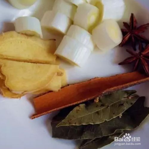 猪皮的剩毛拔干净,五花肉清洗干净,切成适中的方块。大葱切段,姜片,八角,挂皮,香叶等材料备用