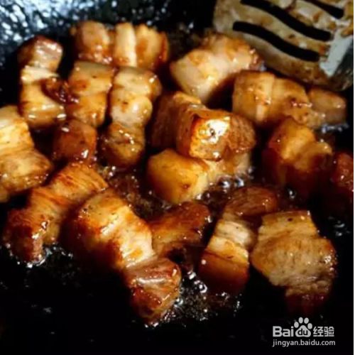 翻炒至五花肉有点焦,捞出来油要沥干, 香料挑出来待用。五花肉偏瘦的不用炒太久,不然会柴。
