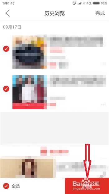 点击后会在每个浏览记录的前方出现选择项,选择想要删除的浏览记录,选择好后点击右下角的【删除】选项。