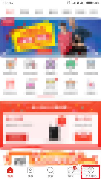 打开手机中的拼多多,在拼多多的首页中找到并点击右下角的【个人中心】选项。