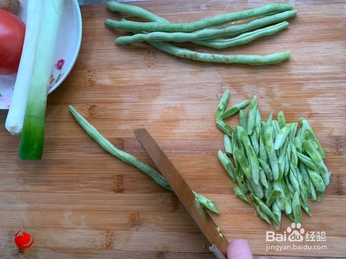 切芸豆时要斜刀切,切成薄片,一来好焯,二来好吃。
