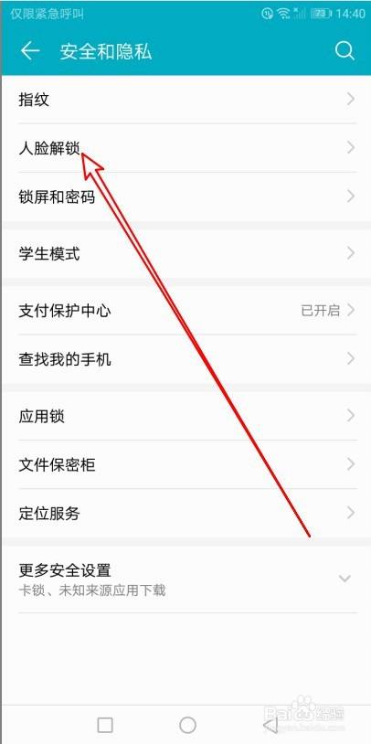 接下来在打开的安全和隐私页面,点击人脸解锁设置项。