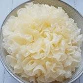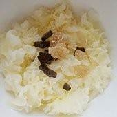 将银耳泡发。红枣洗干净,玫瑰花朵,冰糖备好一起备好。