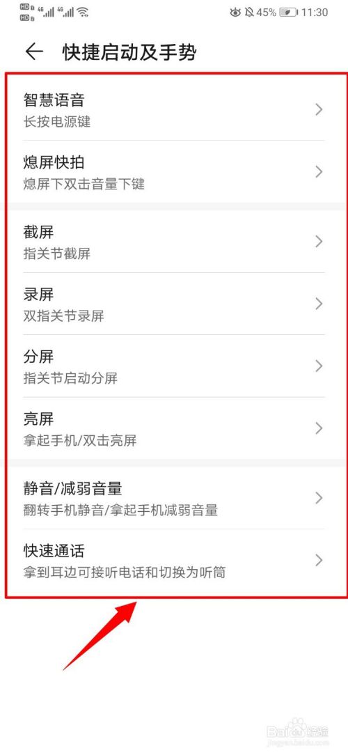 在“快捷启动与手势”中我们可以看到各种快捷操作的方式 我们将我们需要的快捷方式开启即可