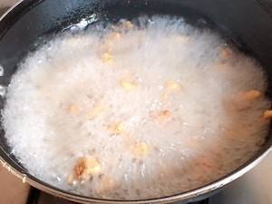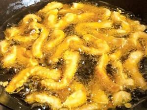 油温升高到七成热时进行复炸,周围出现大气泡且颜色呈黄色,肉酥脆的时候捞出