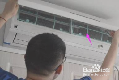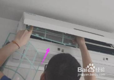 打开空调保护盖,取出空调过滤网。