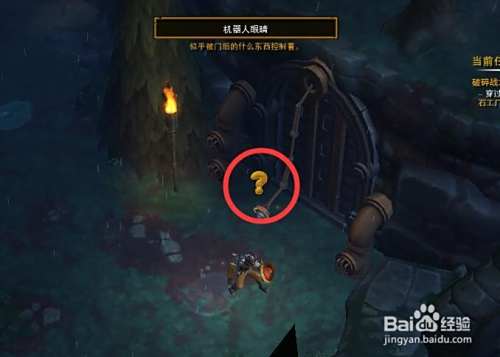 我们到达任务点,可以看到一个大铁门,铁门中间有一个机器眼睛