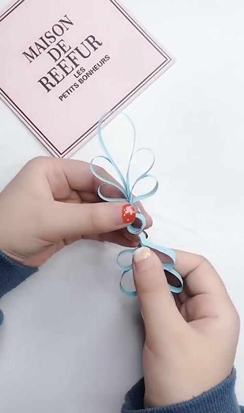 然后再将纸条握成圈形,底部粘在一起。
