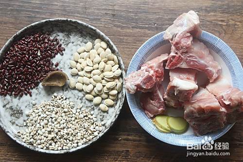 白扁豆、赤小豆和薏米提前用水浸泡1小时;