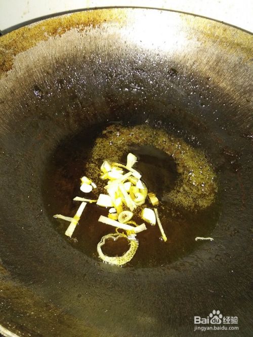 炒锅倒油100毫升,开大火。油冒烟时放入葱姜蒜炝锅。