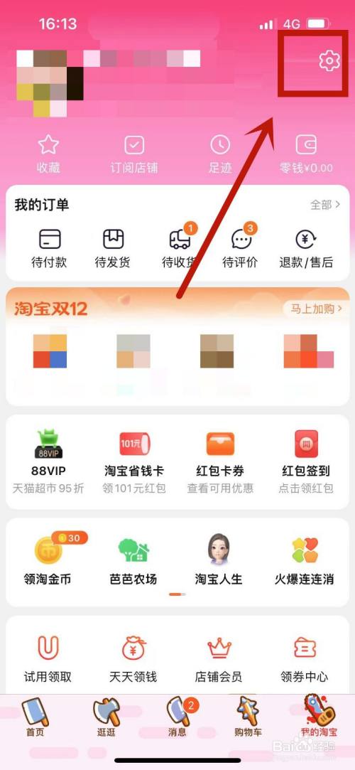 找到我的淘宝页面右上角的设置选项。