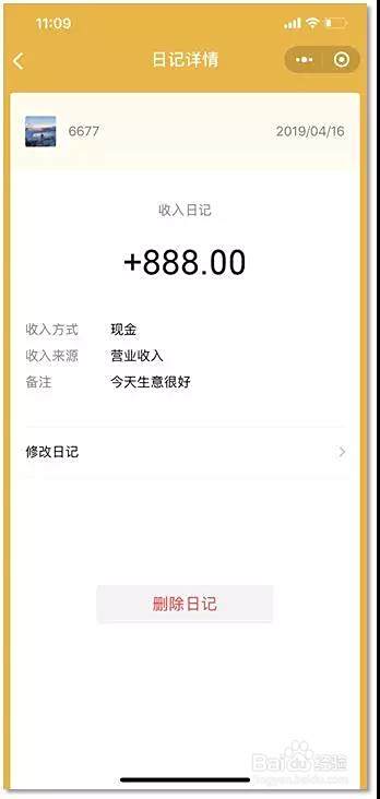 如果需要查看记录明细,可以点击需要查看的日记,查看添加详情;如果想要删除日记,点击日记详情下方的【删除日记】即可删除记录。