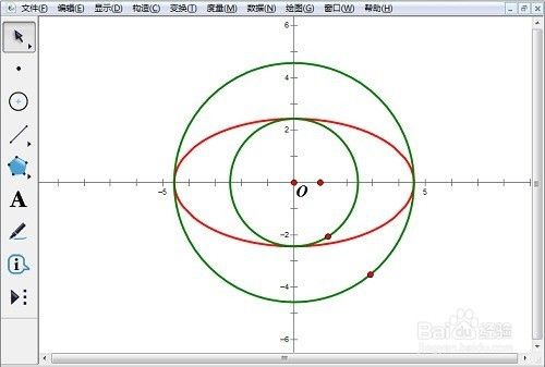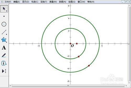 2.选择“圆工具”,以原点O为圆心绘制两个同心圆。
