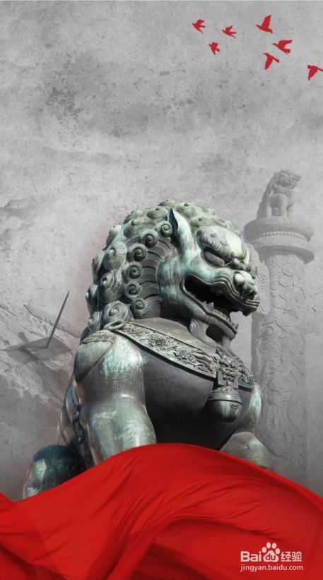 在页面正中添加石狮子元素